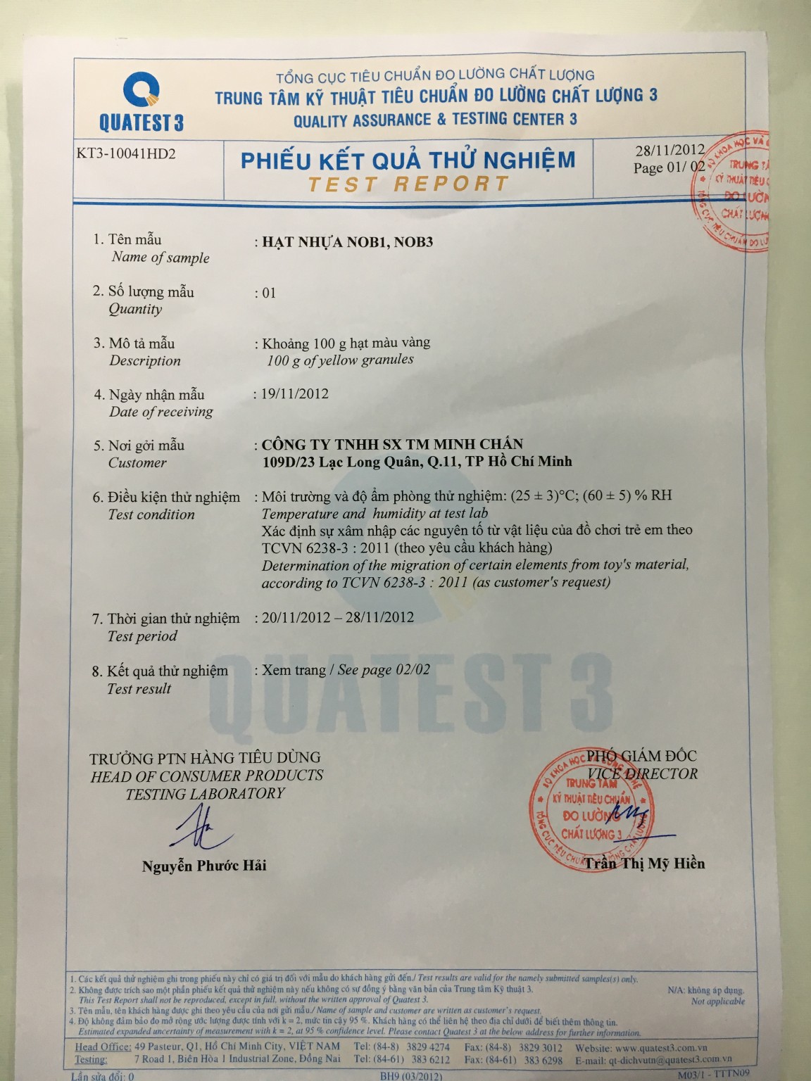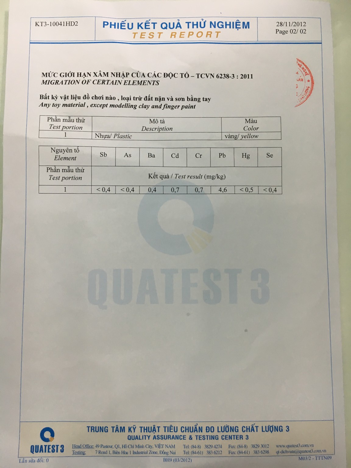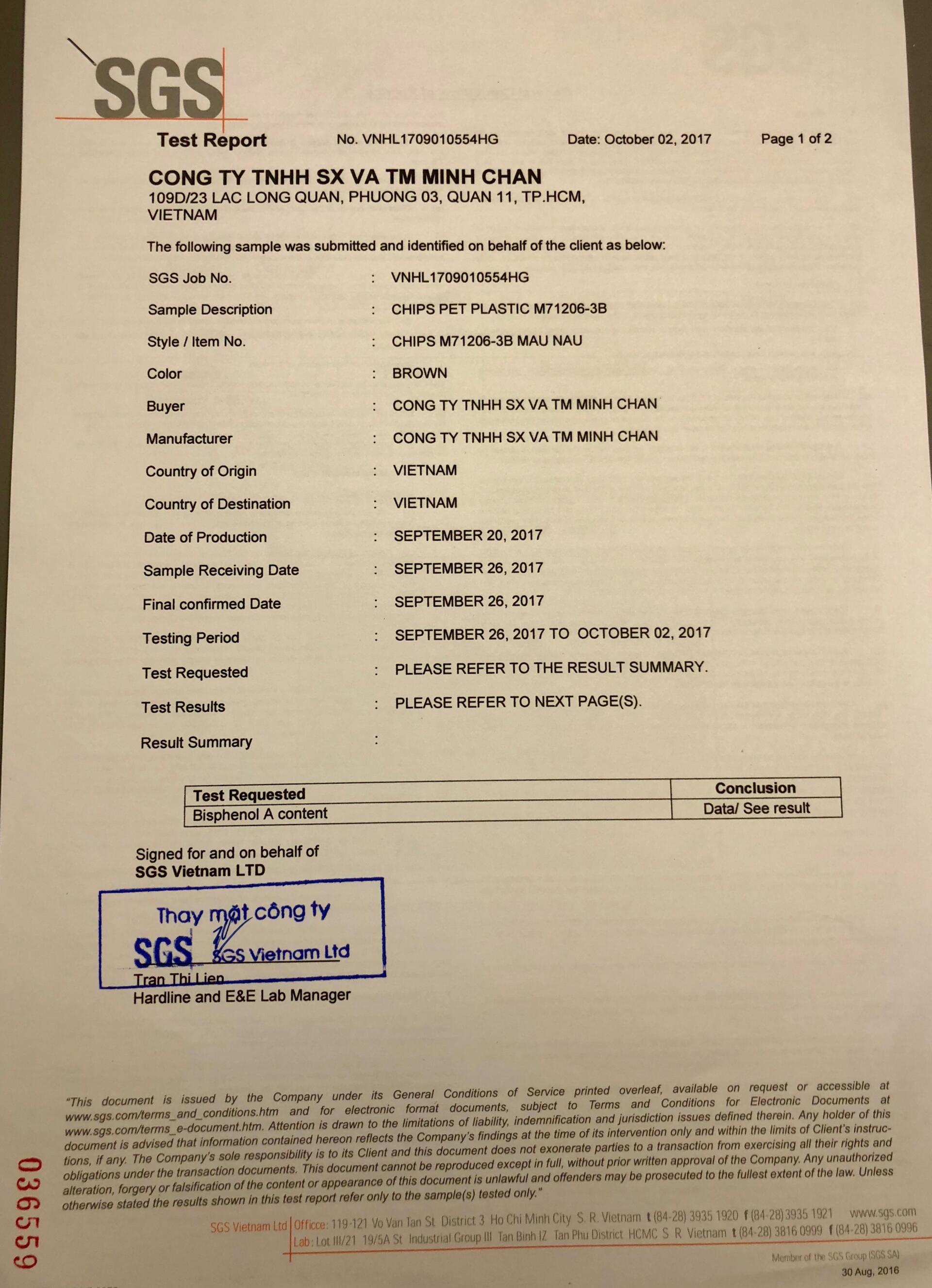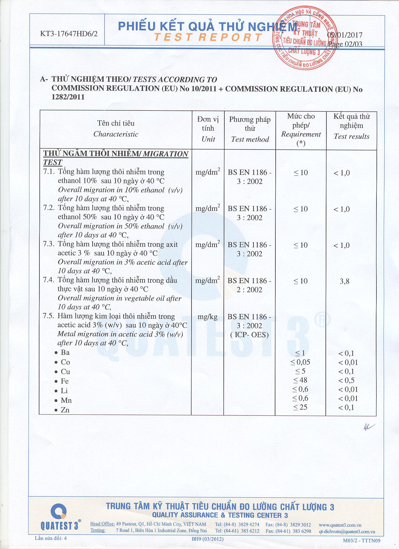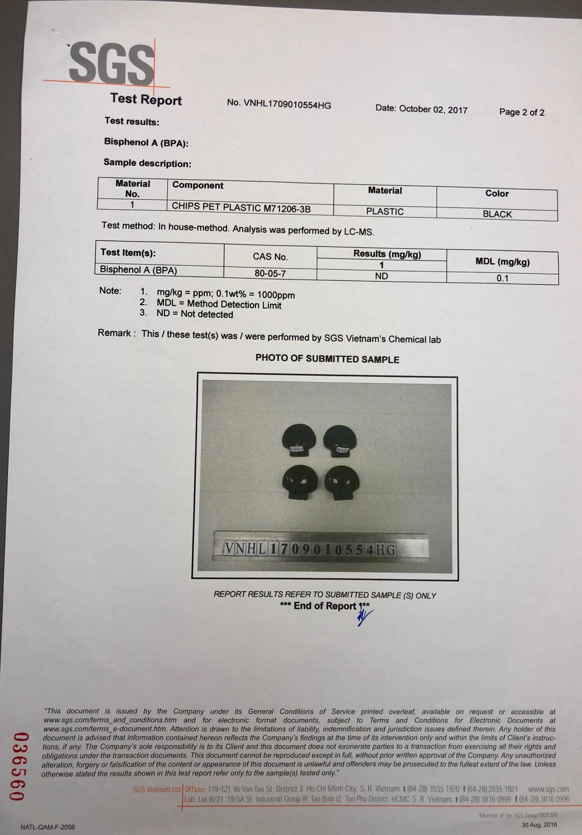 Đối với các sản phẩm được phát triển cho ngành công nghiệp sản xuất đồ chơi, sản phẩm của chúng tôi tuân thủ : EU (No) 10/2011, EN71 III 2013 + A1: 2014.