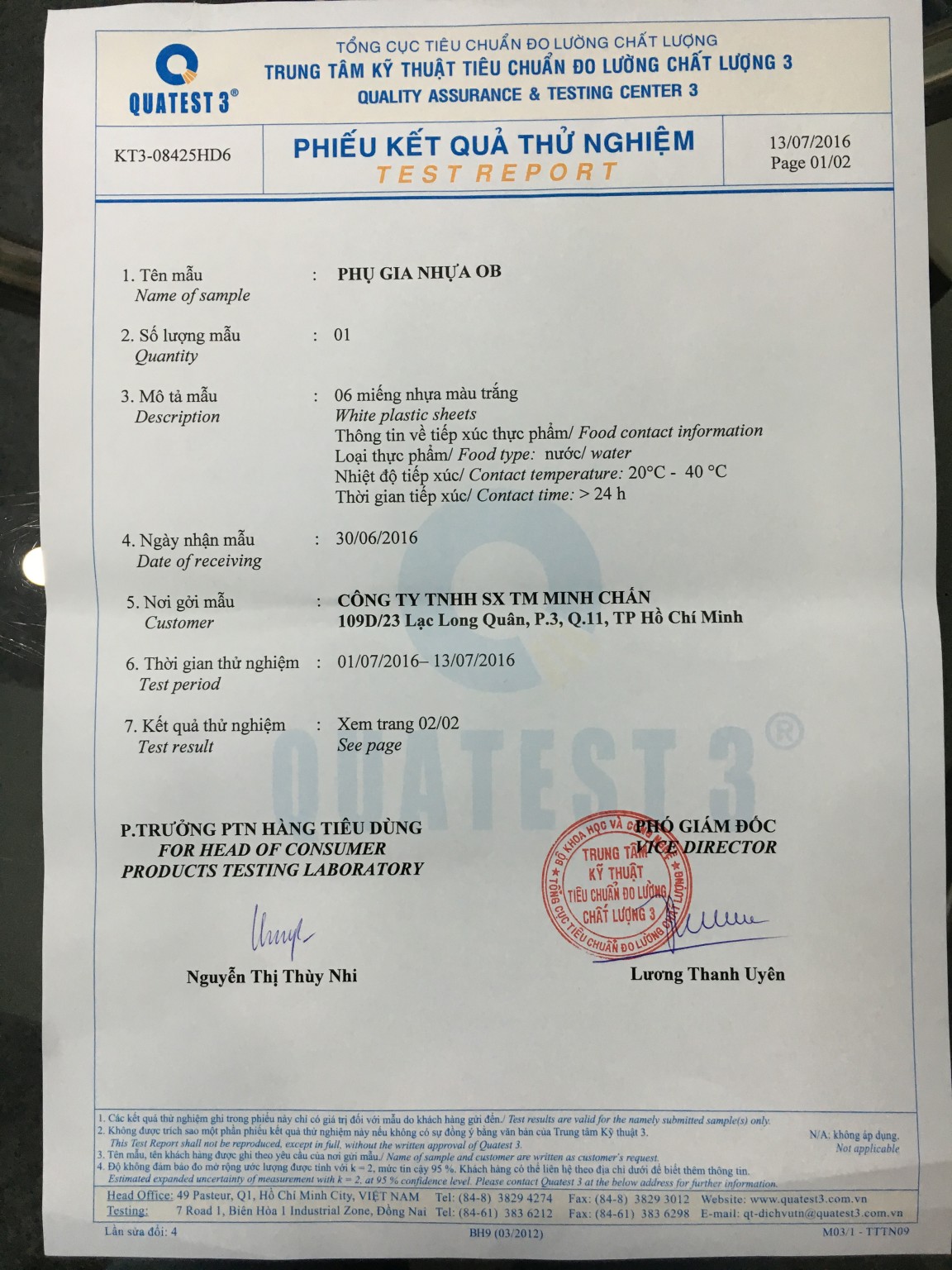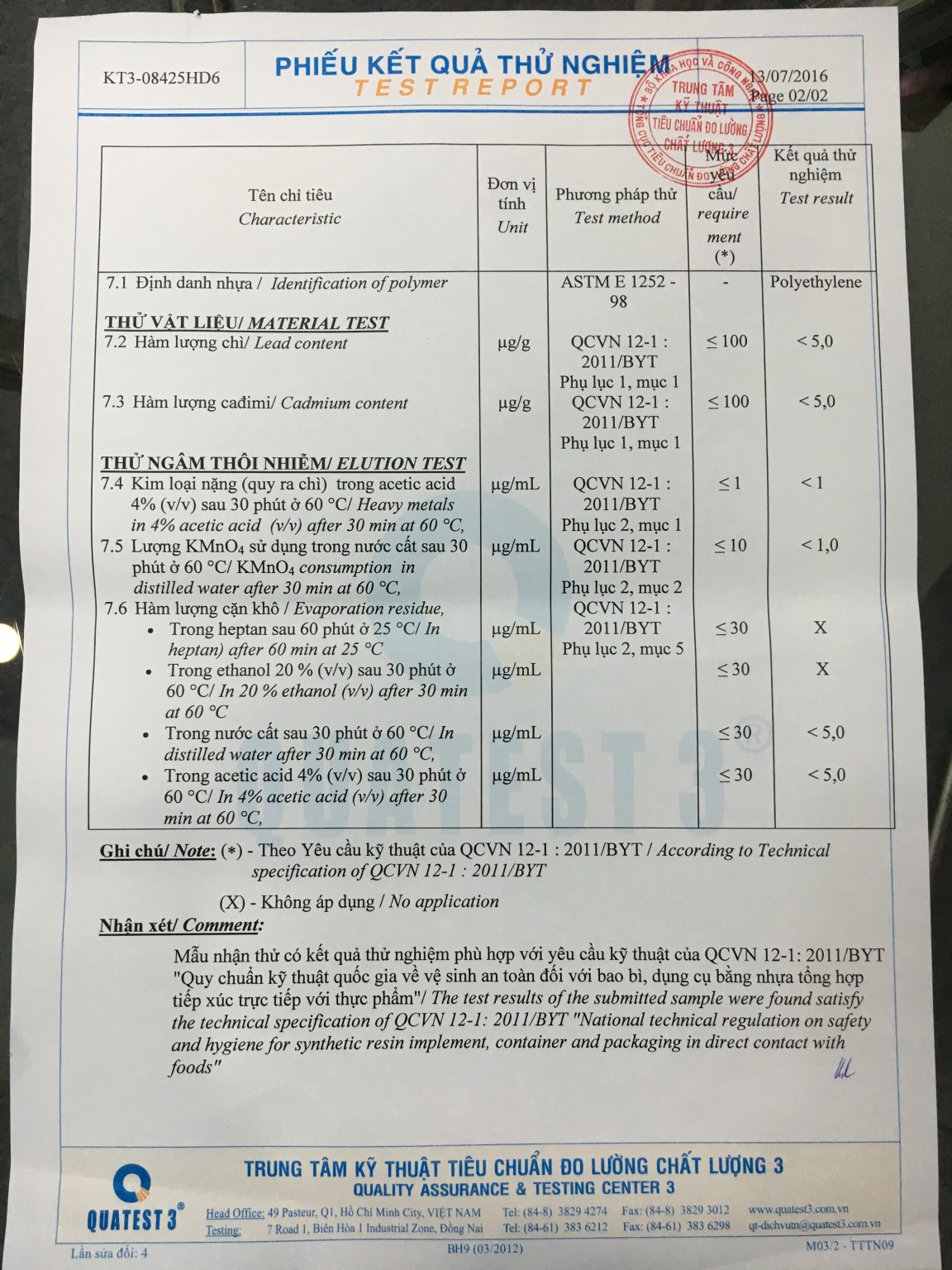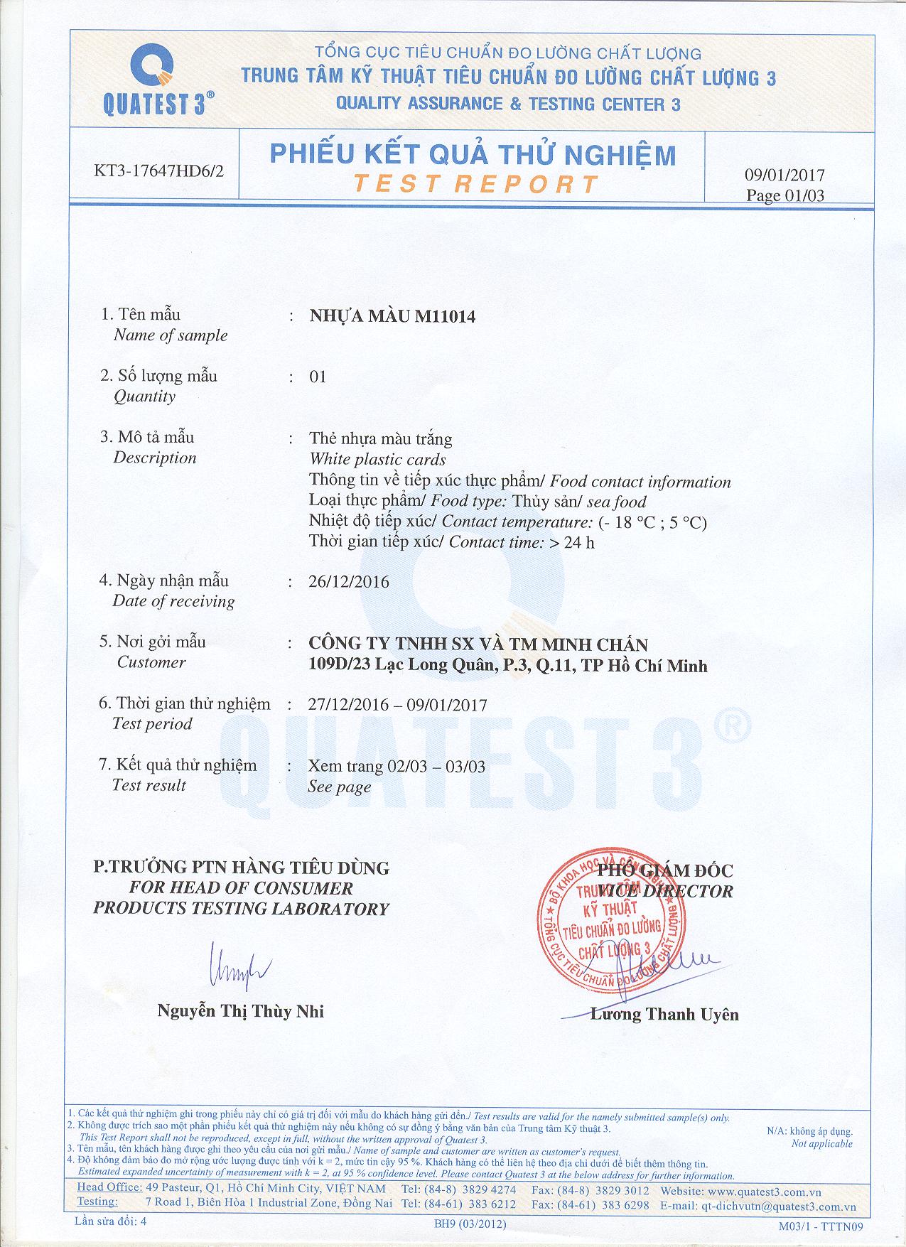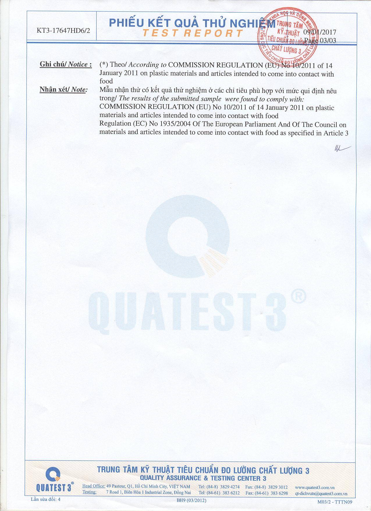 Khi sản xuất masterbatch sẽ được tiếp xúc với thực phẩm, chúng tôi đáp ứng các tiêu chuẩn của Quatest 3 TCVN, SGS, FDA 21 CFR 177.1630…